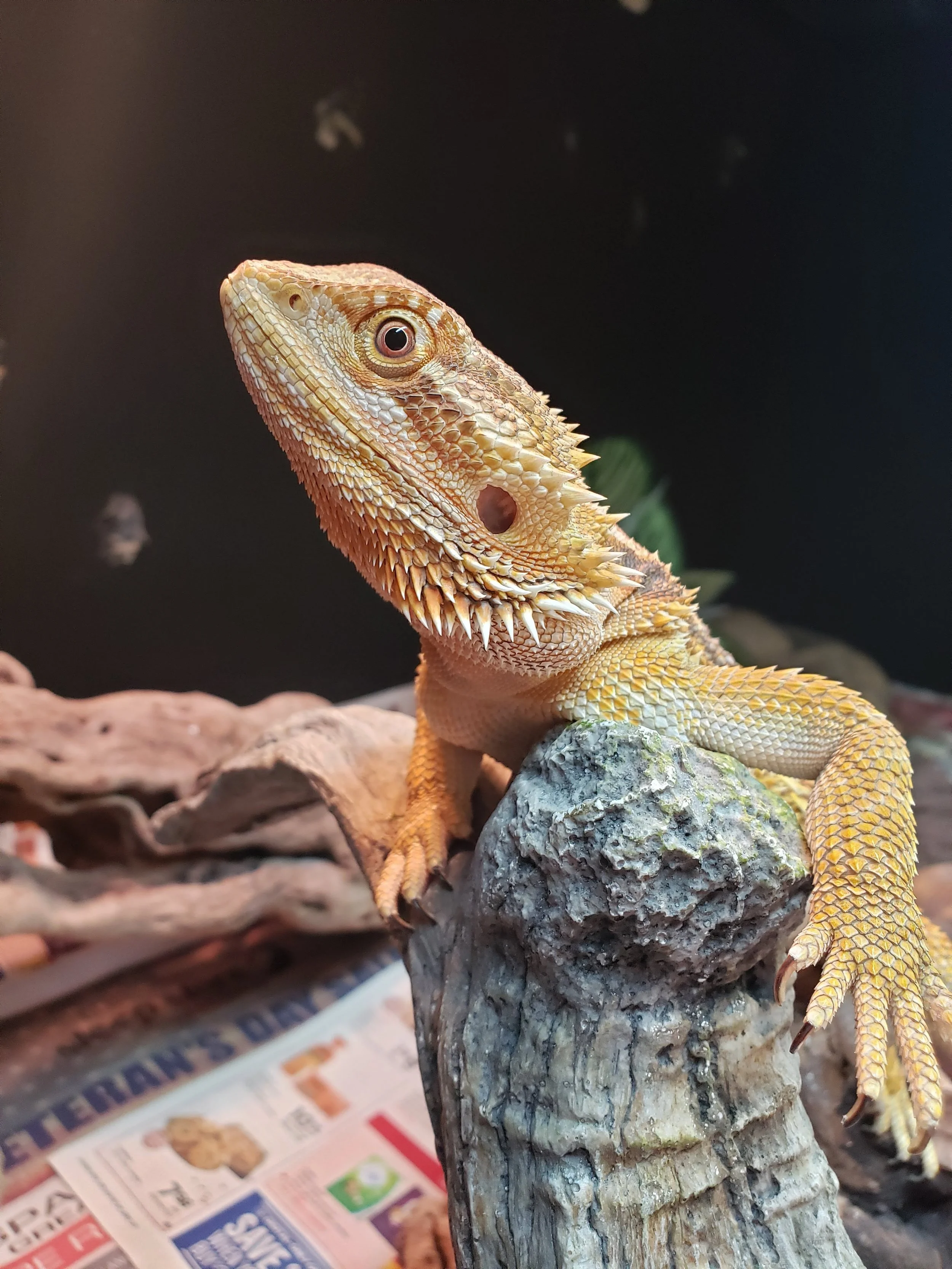 Meet Explorer, the Bearded Dragon! This beautiful dragon has gorgeous orange coloring and a curious personality.