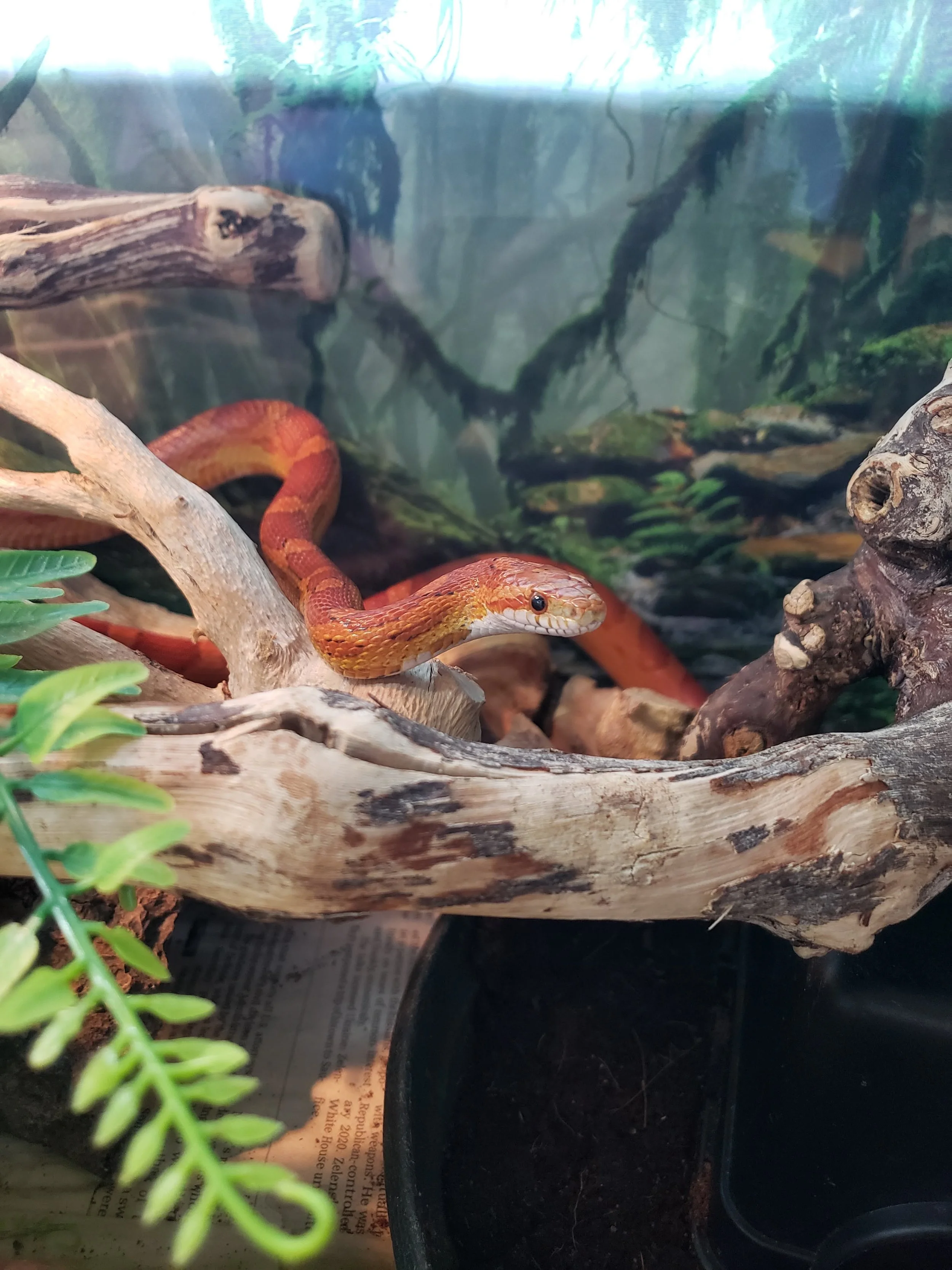 Io is a sweet and gentle corn snake who would love a home where they can get plenty of attention and a habitat to help them thrive as they continue to grow to their mature size. Io is a little picky on their rodent feeders but loves frozen/thawed quail!